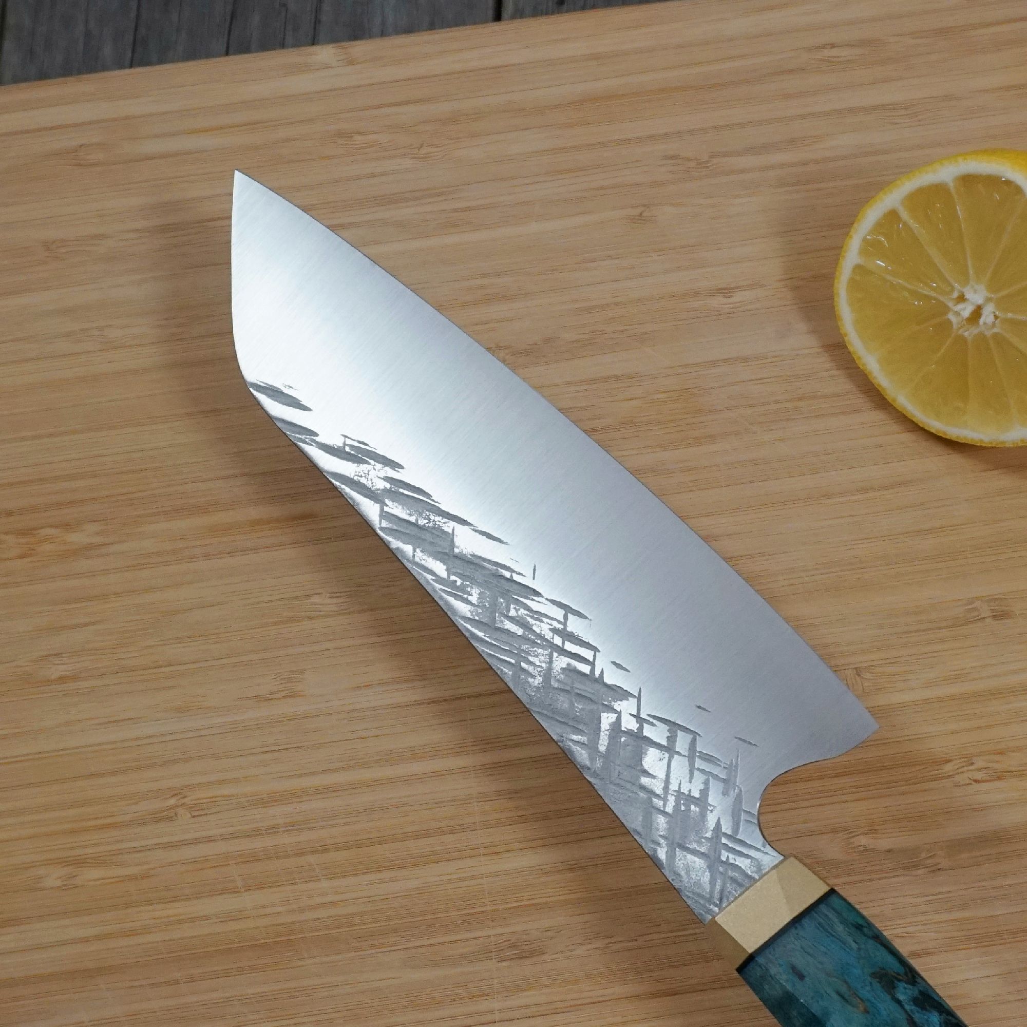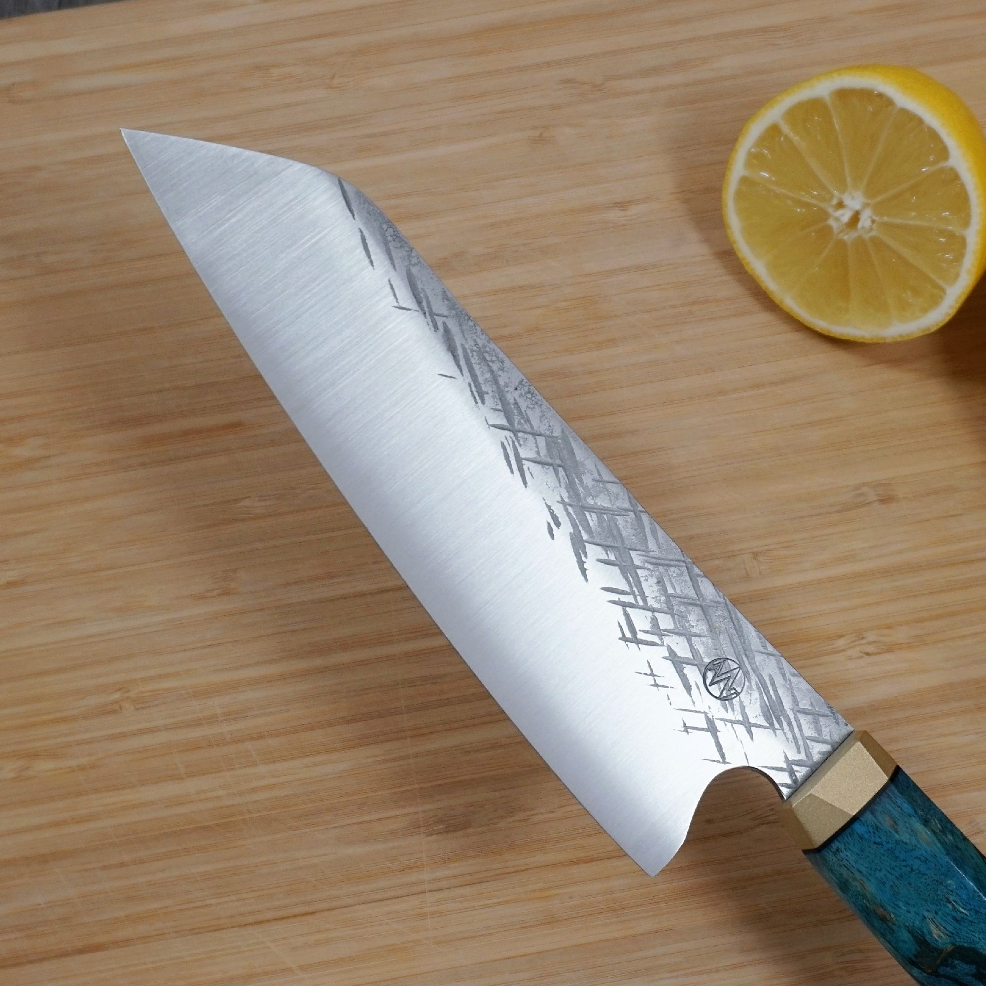 - Handgeschmiedetes Santoku Küchenmesser – universell und vielseitig einsetzbar – für Gemüse genauso wie für Fisch und Fleisch
