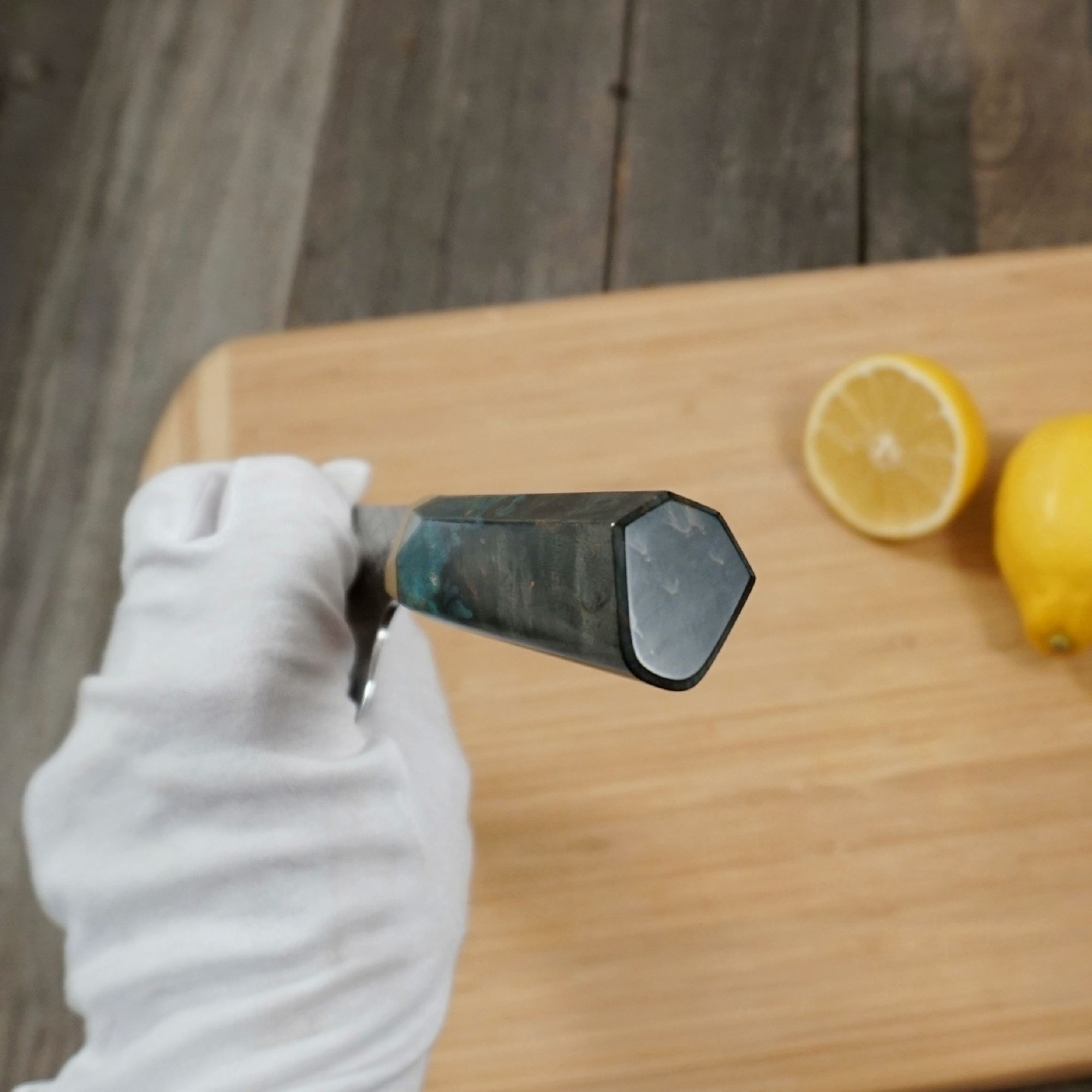 - Klinge aus rostfreiem Stahl AEB-L (ein sehr feinkörniger Stahl, der von Messerschmieden u. -machern auf der ganzen Welt für hochwertige Küchenmesser eingesetzt wird)